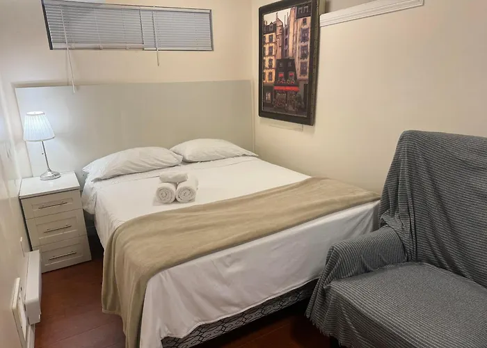 O quarto em acomodações particulares fica à uma distância de aproximadamente 10 minutos a pé de Museu de Vancouver. Este apartamento também está situado nas proximidades de Granville Chapel. 7 km do apartamento encontrará Galeria de Arte de Vancouver.
